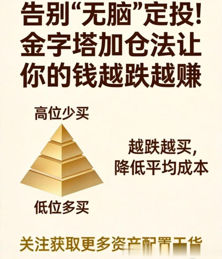 最近市場波動,不少粉絲問我:“桑尼老師,定投半天成本越來越高,該怎么辦?”今天,桑尼給大家介紹一個更聰明的加倉方法——金字塔加倉法。這個方法簡單實用,能幫你解決“什么時候買、買多少”的難題。