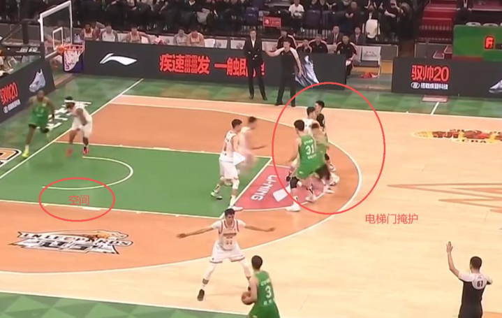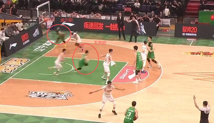李曉旭和張陳治鋒在罰球線附近準(zhǔn)備給王嵐嵚做一個(gè)電梯門(mén)掩護(hù),威爾斯埋伏在遠(yuǎn)端,這樣威爾斯有足夠的啟動(dòng)空間,首先這個(gè)落位就非常合理,同時(shí)有兩個(gè)機(jī)會(huì)點(diǎn)可能出現(xiàn)。