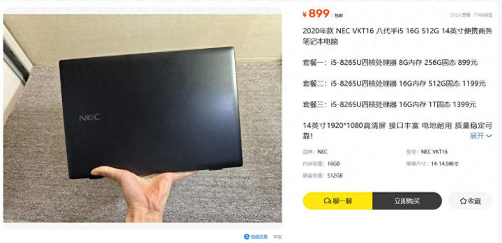 如果價格合適,配置還行,你愿不愿意在二手魚上買筆記本電腦呢?別急著搖頭。最近我在二手魚上刷到一批2020年的NEC VKT16,價格從899一路飆到1399,配置卻一個比一個狠,核心配置是i5-8265U,可以選配16G內(nèi)存和1T固態(tài)。