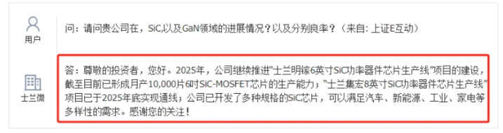 功率半導體:公司咫尺已釀成月產10,000片6吋SiC-MOSFET芯片的坐褥才氣。同期已開發(fā)了多種規(guī)格的SiC芯片,不錯歡快汽車、新動力、工業(yè)、家電等種種性的需求。